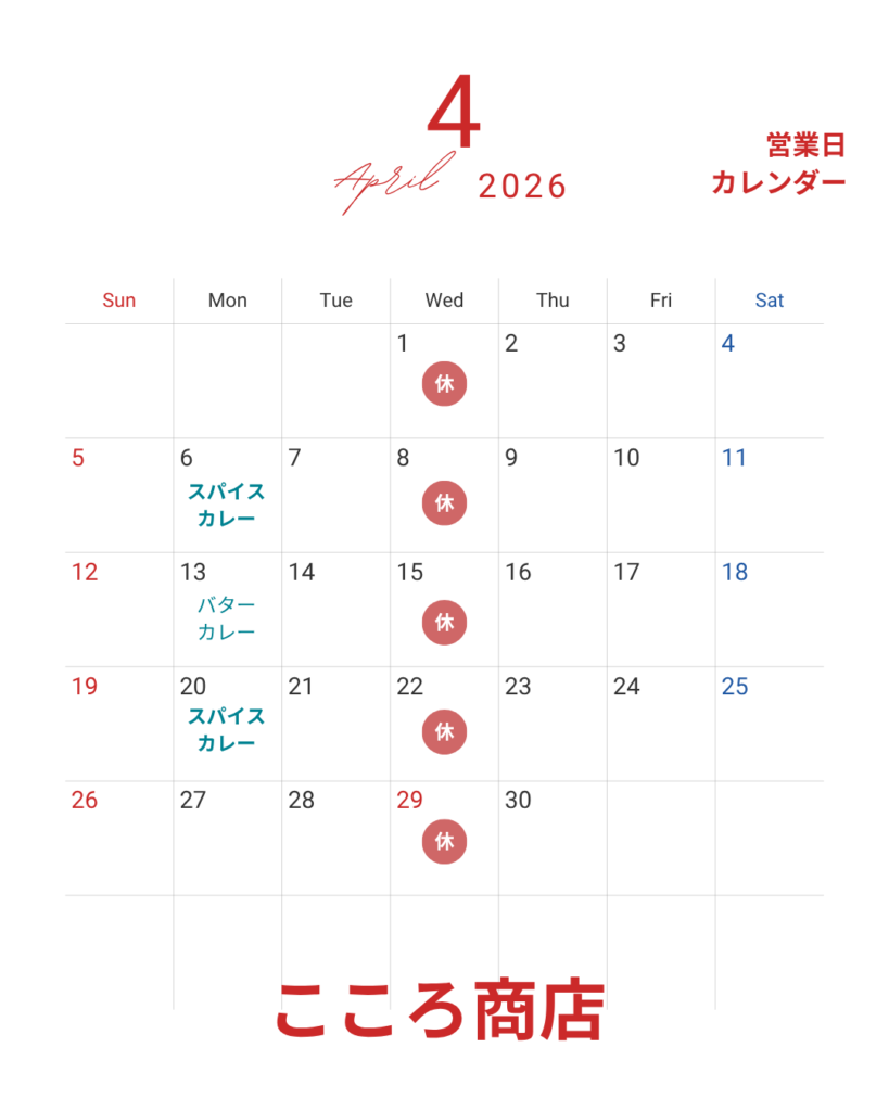 ※4月20日のスパイスカレーは販売致しません。ご容赦ください。
